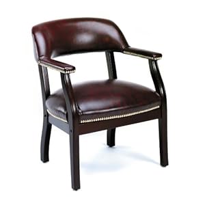 Classic traditional styling features hand applied individual brass nail head trim. Versatile chair for deskside, lounge, or conference room. Sturdy hardwood frame with a rich mahogany finish and covered in a soft durable easy care burgundy vinyl. No-sag spring seat. Available with casters item B9545. Dimensions: Seat Size: 22-inch W x 21-inch D, Back Size: 24-inch W x 12.5-inch H, Seat heigh... Click Here For More Detail